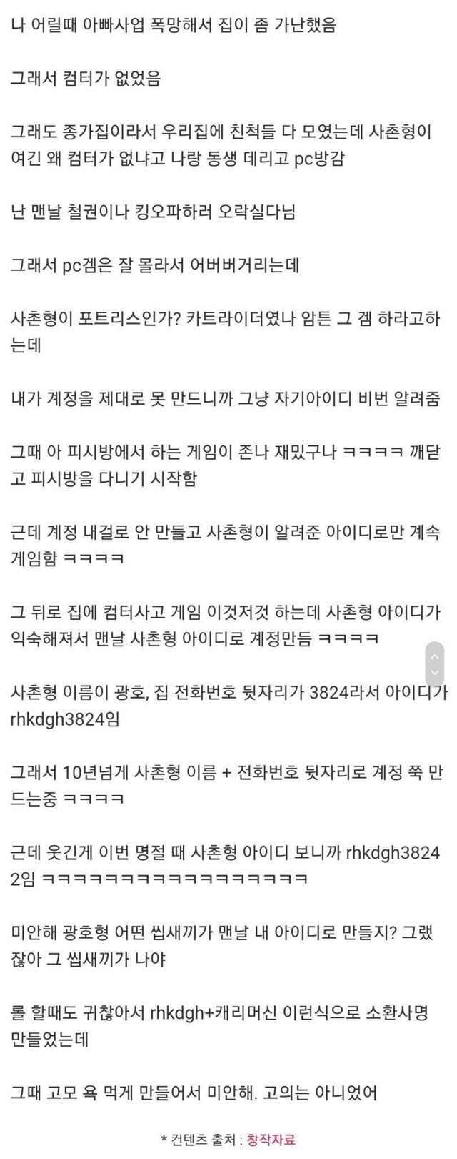 작성자객관적얼빠 작성시간 20.05.30 헐 나도ㅋㅋ̄̈ㅋ꙼̈ㅋ̆̎ㅋ̐̈ㅋ̊̈ㅋ꙼̈ㅋ̆̎ㅋ̐̈ㅋ̊̈ㅋ꙼̈ㅋ̆̎ㅋ̐̈ㅋ̊̈ 초딩때 메이플 사촌오빠 아이디 비번ㅋㅋ 그이후로 모든 아이디 비번은 그거임
