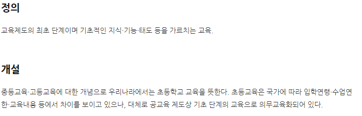 기초적인 지식, 기능 그리고 태도를 가르치는 교육이라고 함 (네이버 지식백과에서 가져왔지만 다른데서도 비슷)