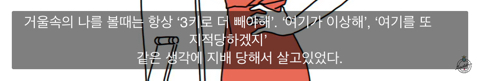 이번에 복귀하시면서 본인이 어떤 상태였고(폭식증, 우울증, 외모강박관념) 어떻게 스스로를 마주하게 되었는지