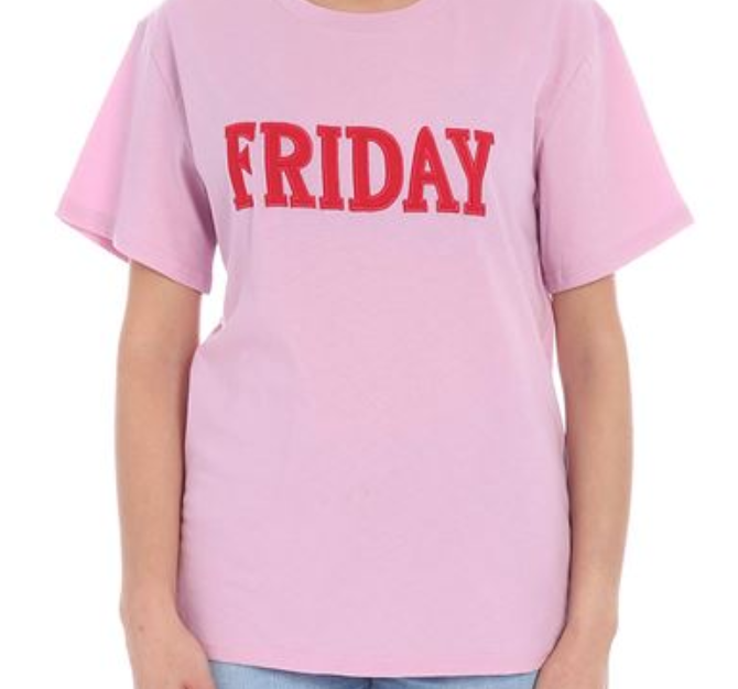 자신에게 Friday라고 적힌 티셔츠가 있음