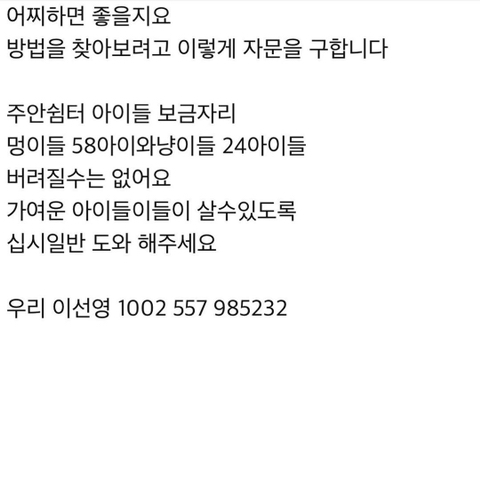 임보나 입양 문의도 좋고 적은 금액이라도, 정말 커피 한 잔 값이라도 좋으니 후원에 동참해주시면 감사하겠습니다.