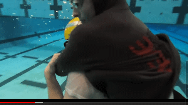 구조자의 목을 잡았을 때의