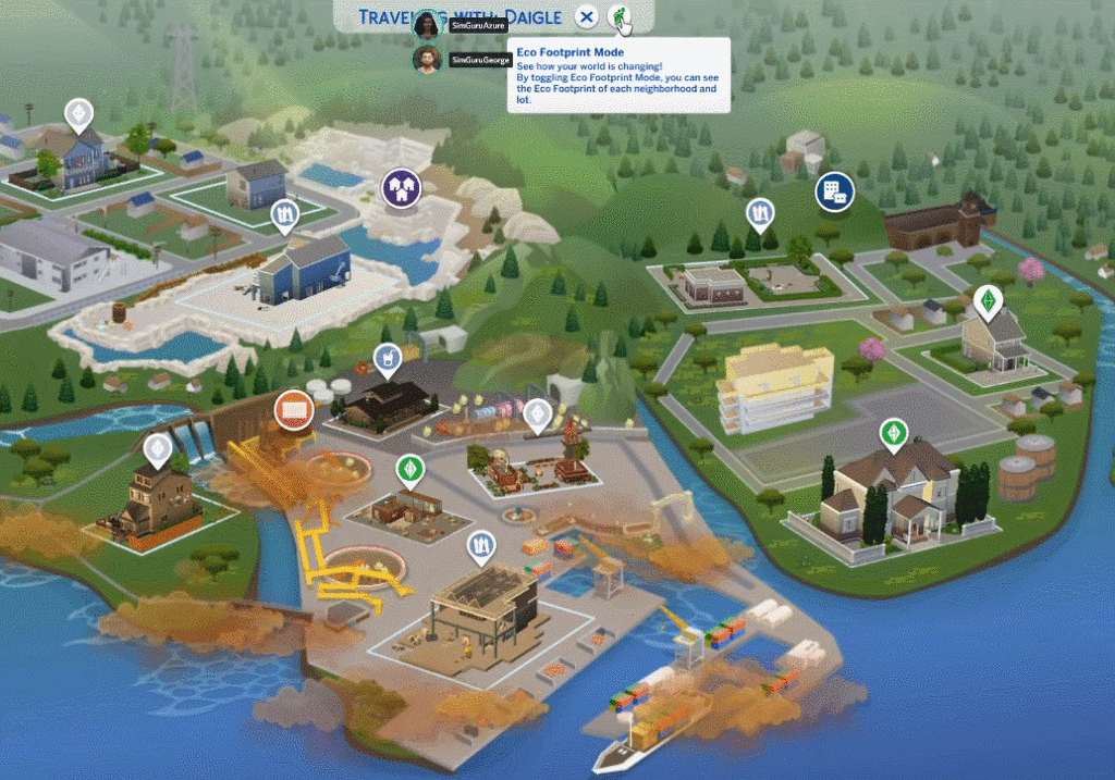 상단에 있는 에코 아이콘을 누르면 구역별 생태발자국을 알 수 있대