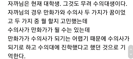 수의사와 만화가 둘 중 고민하다가