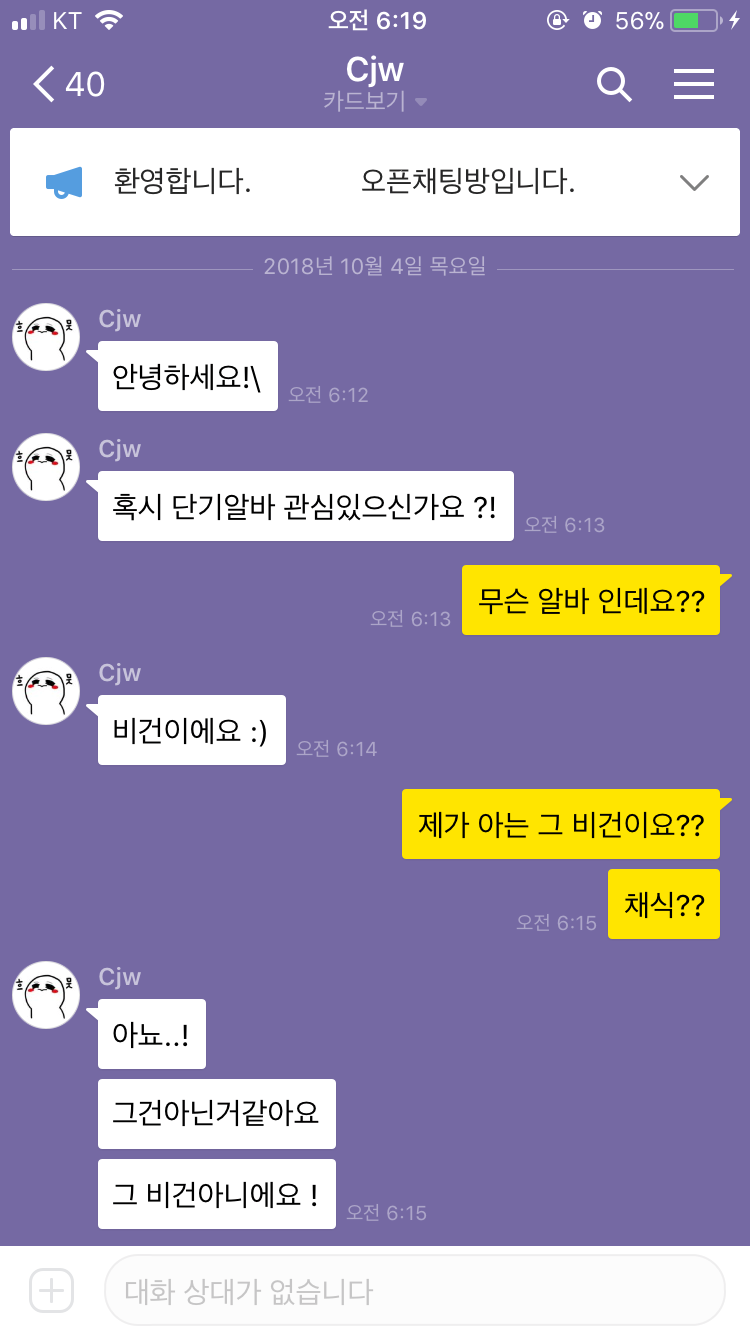 친구가 보내준 오픈채팅인데 너무 웃겨서 같이 웃고싶어서 글 써봄 (말주변없어서 재미 없을까봐 걱정)