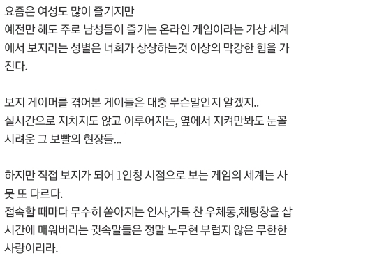실제 여자게이머들은 대다수가 최대한 여자인거 티안내려고 함