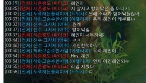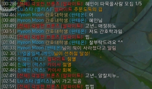 그런데 전체채팅으로 오빠 언냐 거리면서 혜인이가 더 잘행 ㅎ 서폿차이~! 이러고있다?