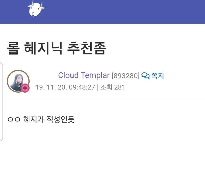 (혜지 : 한남들이 상대가 여자게이머로 추정될때 싸잡아서 욕하는 이름)
