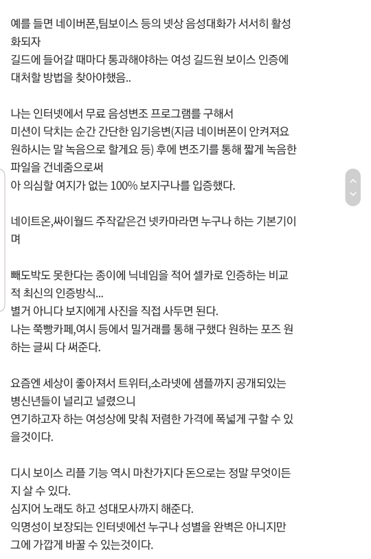 참고로 유튜브에 여자목소리내는법 치면 영상 ㅈㄴ많고 조회수 미쳤음