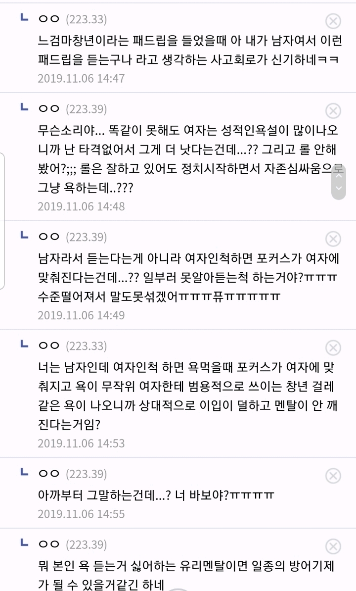 여혐욕은 들어봤자 아무렇지도 않고 오히려 꼴림