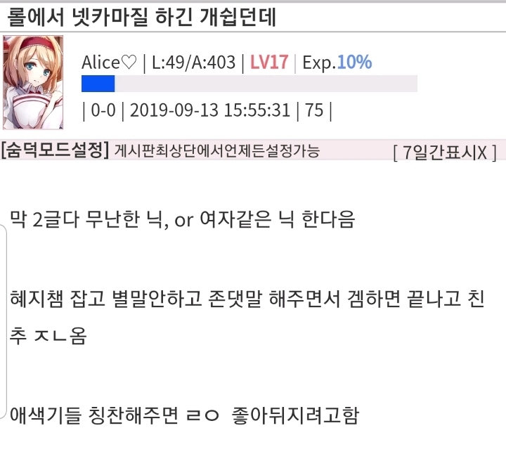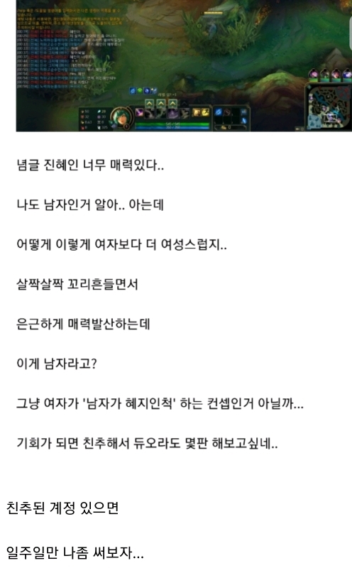[스크랩] [씹빨쌔끼뜰]스압, 롤) 게임에서 작정하고 여자인척하는 한남들 개많음 이 글 보면 충격일듯ㅋㅋ