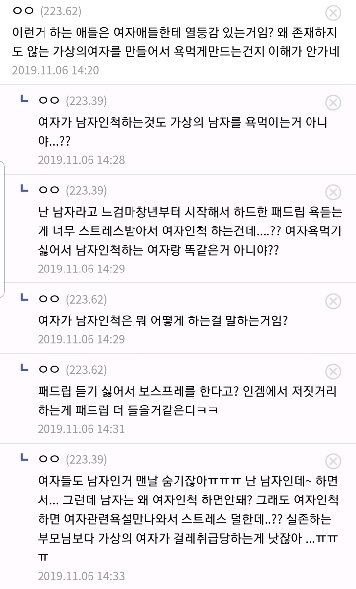 실존하는 부모님이나 나보다는 가상의 여자가 걸레 창년 취급당하는게 더 낫다는 한남...