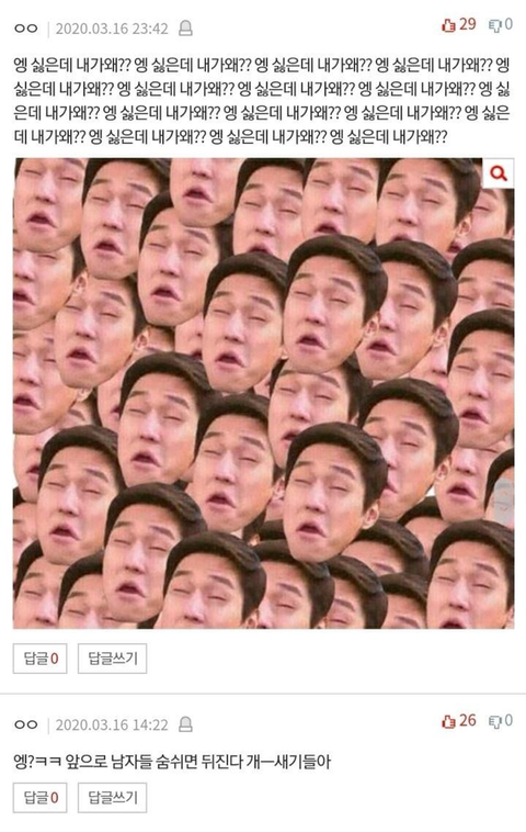 [스크랩] [흥미돋]여자들 엥? 소리 내지 마라 작성자ㄱㅑ악|작성시간20.06.08|조회수4,624 목록 댓글 41 글자크기 작게가 글자크기 크게가 출처 : 네이트판 다음검색 스크랩 원문 : *여성시대* 차분한 20대들의 알흠다운 공간 현재 게시글 추가 기능 열기 북마크 공유하기 신고 센터로 신고 댓글 댓글 41 댓글쓰기 답글쓰기 댓글 리스트 작성자트랜스고양이 | 작성시간 20.06.09 엥( ꒪⌓꒪) 작성자썸머썸머썸머 | 작성시간 20.06.09 엥렝엥애에에에에에에ㅔ에에에엥 작성자치즈샌드 | 작성시간 20.06.09 엥? 에엥?에에에에엥ㅇ?엥?에에에에 에에에에 에오 투웨니원~ 작성자돼지고기묵은지찜 | 작성시간 20.06.09 엥? 작성자콩국수콩콩콩 | 작성시간 20.06.09 엥;;; 댓글 전체보기