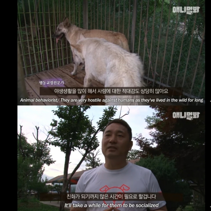유기된 후 야생 생활로 인해 사람에 대한 적대감도 높은 상태