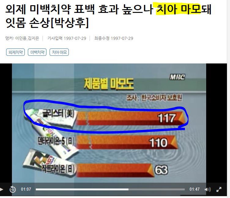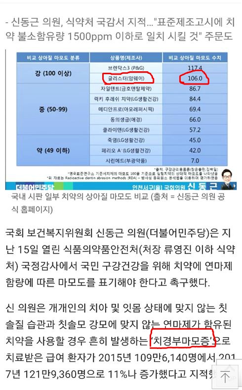 글리스터 치약이 연마제가 과하게 들어가있다는 내용이야