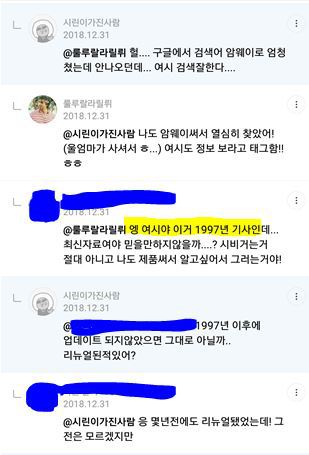 다시 파란 여시가 '1997년 기사' 라면서 신뢰성을 의심 하더라고