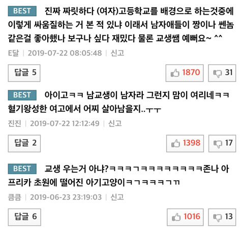 나 학원물이 보고싶은데 네웹특유의 일진미화웹툰 존나 싫어하거든 오글거리고 여혐오지고 ㅋㅋㅋ 그거 아니면 한남나오는 로맨스물이어서 별로였는데 이 웹툰 개추천임 여기도 막장 양아치 나오긴 하는데 일진미화로 안느껴져 그냥 진짜 다같이 밑바닥인 기분이라ㅋㅋㅋ