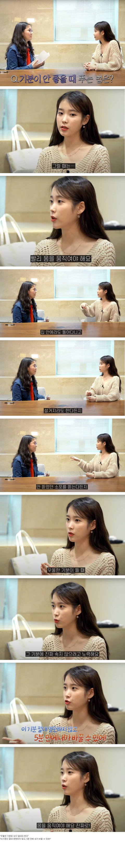 [스크랩] [흥미돋]아이유가 말하는 기분 안좋을 때 푸는법 작성자그말만은말아요|작성시간20.06.21|조회수175,526 목록 댓글 40 글자크기 작게가 글자크기 크게가 https://theqoo.net/1414035909이 기분 절대 영원하지 않고 내가 5분안에 바꿀수있어! 다음검색 스크랩 원문 : 쭉빵카페 현재 게시글 추가 기능 열기 북마크 공유하기 신고 센터로 신고 댓글 댓글 40 댓글쓰기 답글쓰기 댓글 리스트 답댓글 작성자행복하자앞으로 | 작성시간 20.06.21 https://youtu.be/pEP-LVcrxYc 동영상 작성자과몰입하지말자글쿤하고넘어가자 | 작성시간 20.06.21 나도 노력해야지..!! 작성자염~~~~* | 작성시간 20.06.21 대단해 아이유~~!!!!근데 진짜 우울할때 가만있으면 더 깊게 우울해져ㅠㅠ 작성자Offthewall | 작성시간 20.06.21 진짜 너무 멋있어 작성자캐롤리안 | 작성시간 20.06.22 와 마인드진짜짱이다ㅠㅠ 댓글 전체보기