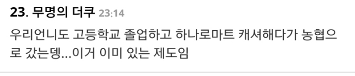 작성자Lou Bloom 작성시간 20.06.25 이거 벌써 재작년엔가 시험 쳐서 정규직 전환 했었잖아 ㅋㅋㅋ... 나 아는 동생도 그래서 비정규직 캐셔로 들어갔다가 시험치고 정규직으로 전환됨