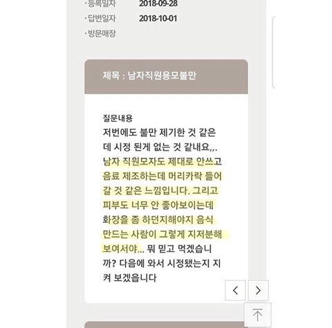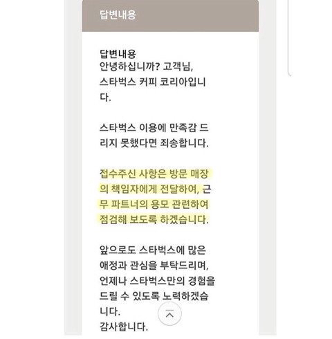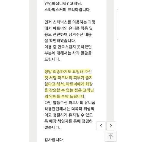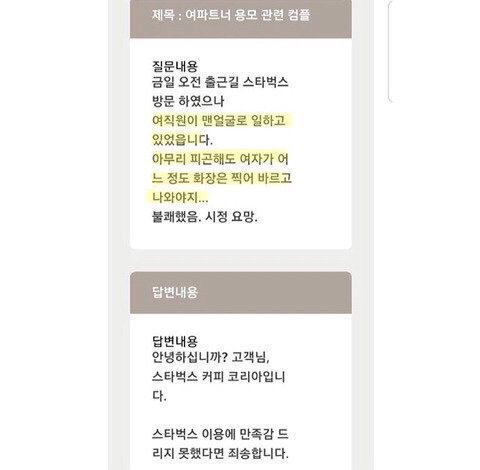 [스크랩] [흥미돋]논란의 스타벅스 용모단정 기준 작성자부채도사|작성시간20.07.04|조회수6,284 목록 댓글 22 글자크기 작게가 글자크기 크게가 출처 : https://www.instiz.net/pt/5979854??? 원래도 안가지만 앞으로도 불매^^77 다음검색 스크랩 원문 : *여성시대* 차분한 20대들의 알흠다운 공간 현재 게시글 추가 기능 열기 북마크 공유하기 신고 센터로 신고 댓글 댓글 22 댓글쓰기 답글쓰기 댓글 리스트 작성자포기는배추를셀때쓴다 | 작성시간 20.07.04 스벅 진짜 안가야지 할리스갈래 작성자그럴수도있는거다 | 작성시간 20.07.04 미친 쌍놈들아...왜그래 작성자2020.01.08 | 작성시간 20.07.04 진짜 불매 좀 했으면...뭐 레디백? 사겠다고 쿠폰모으고 줄서있는거보면 한심.... 작성자뚜까 | 작성시간 20.07.04 ????스벅 안가~~~ 작성자헬스30분 | 작성시간 20.07.04 지라라네 댓글 전체보기