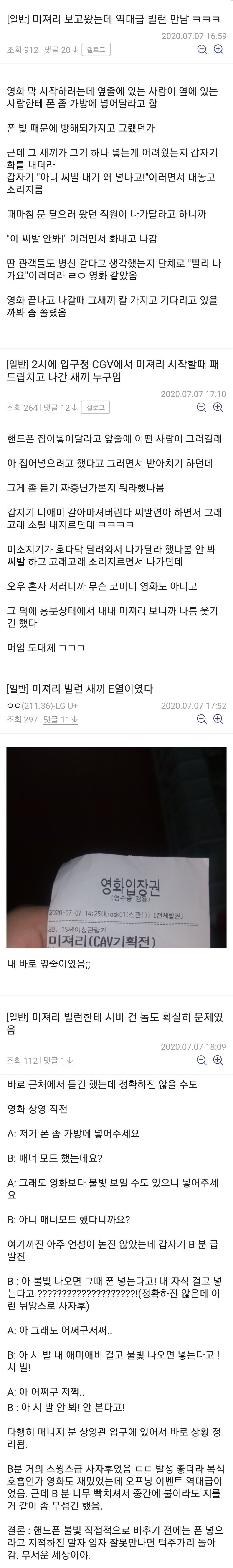 요약 : 영화 상영 전에 휴대폰 꺼내놓은 사람한테