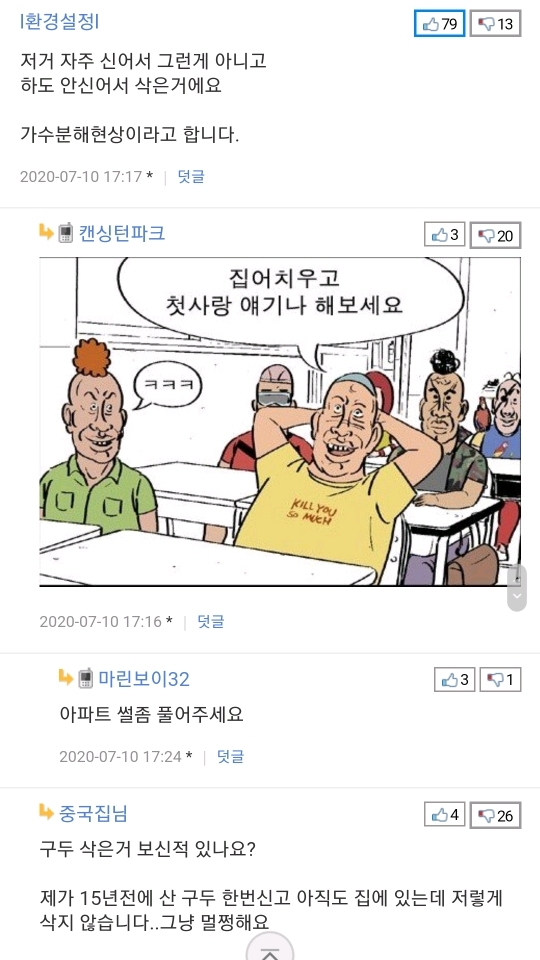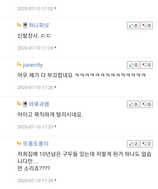 [흥미돋]박원순 시장님의 구두.... 작성자잔뚠건|작성시간20.07.10|조회수28,596 목록 댓글 94 글자크기 작게가 글자크기 크게가 출처 :https://m.ppomppu.co.kr/new/bbs_view.php?id=issue&no=279801 다음검색 현재 게시글 추가 기능 열기 북마크 공유하기 신고 센터로 신고 댓글 댓글 94 댓글쓰기 답글쓰기 댓글 리스트 작성자Korea Grandma | 작성시간 20.07.10 아니 신발 닳은거 못봣나??저건 닳은게 아니라 떨어진거잖아 작성자장래희망돈많은백수 | 작성시간 20.07.10 다 이미지메이킹이지 누가 저렇게 너덜너덜하게다녀 돈도많은데 티피오몰라 작성자좌병덕 | 작성시간 20.07.10 지랄하네 진짜..... 작성자씌앙럼 앙큼한럼 | 작성시간 20.07.10 지랄이노 작성자포카칩오리지날 | 작성시간 20.07.10 ㅋ중국집어디갓냐 댓글 전체보기