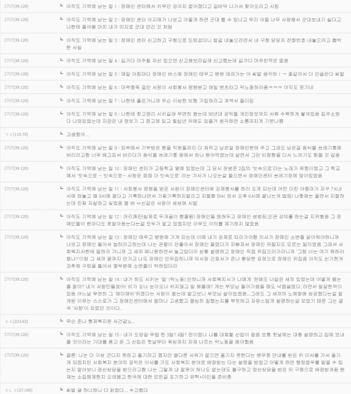 작성자sunday morning rain 작성시간 20.07.11 ?? 남장애인 한정 아니고?ㅋㅋ 나도 1년동안 딱 저렇게 생긴 중증장애인시설에서 봉사활동하면서 밥먹이고 놀아주고 씻겨주고 했었는데 여자 장애인들은 세상 얌전하고 착함ㅋㅋㅋㅋㅋㅋ 근데 남장애인 시설은 음,,,,^^
