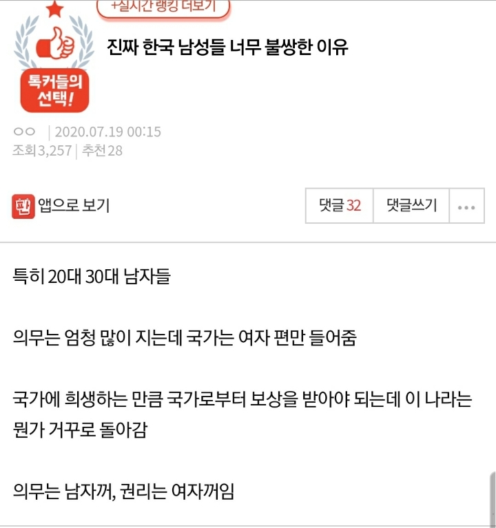 작성자맛창람 작성시간 20.07.20 한국남성들 불쌍한이유
