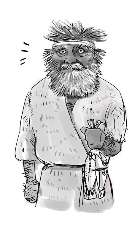 그중 한 늙은이가 손에 풀잎을 받쳐 들고 있었는데, 그 속에는 삶은 물고기 몇 덩어리가 있었다.
