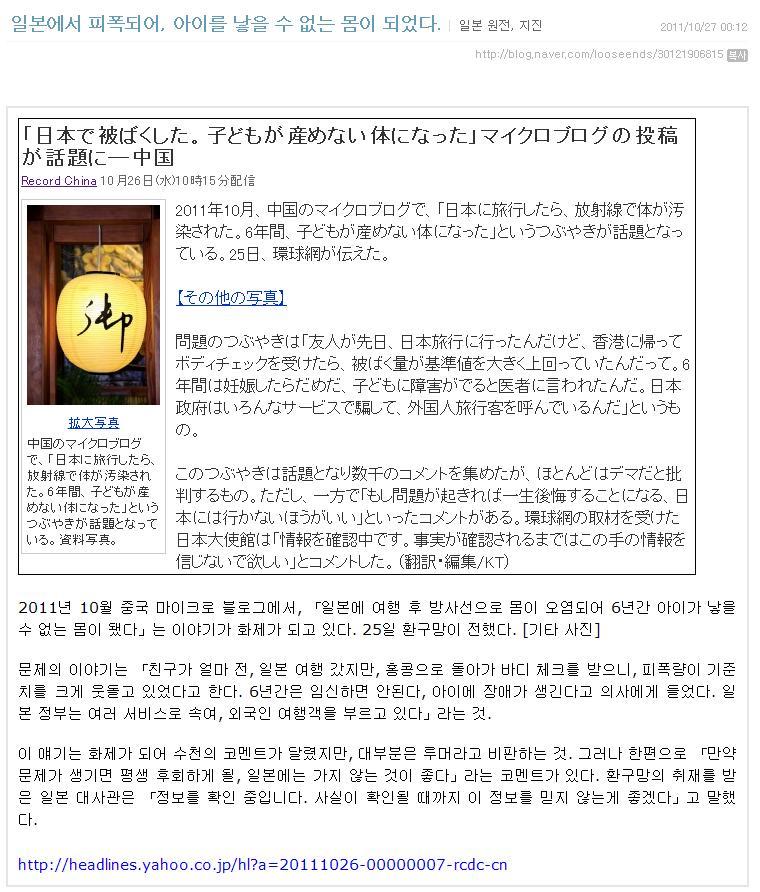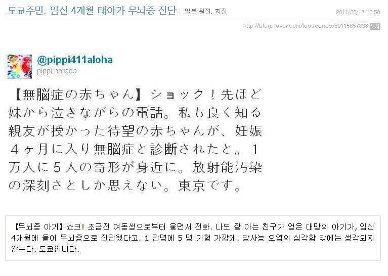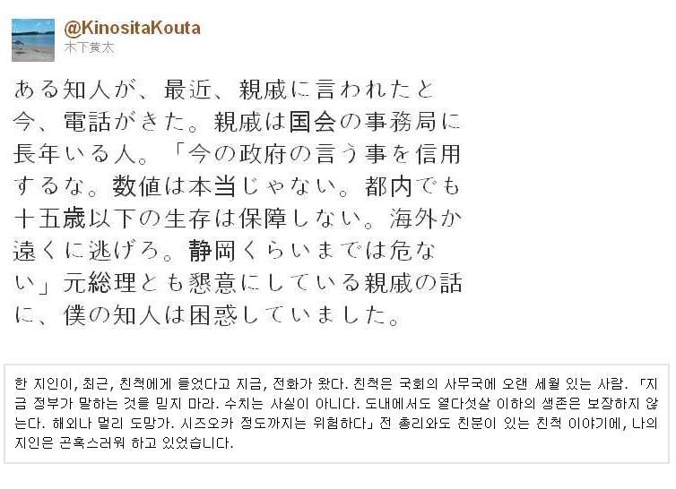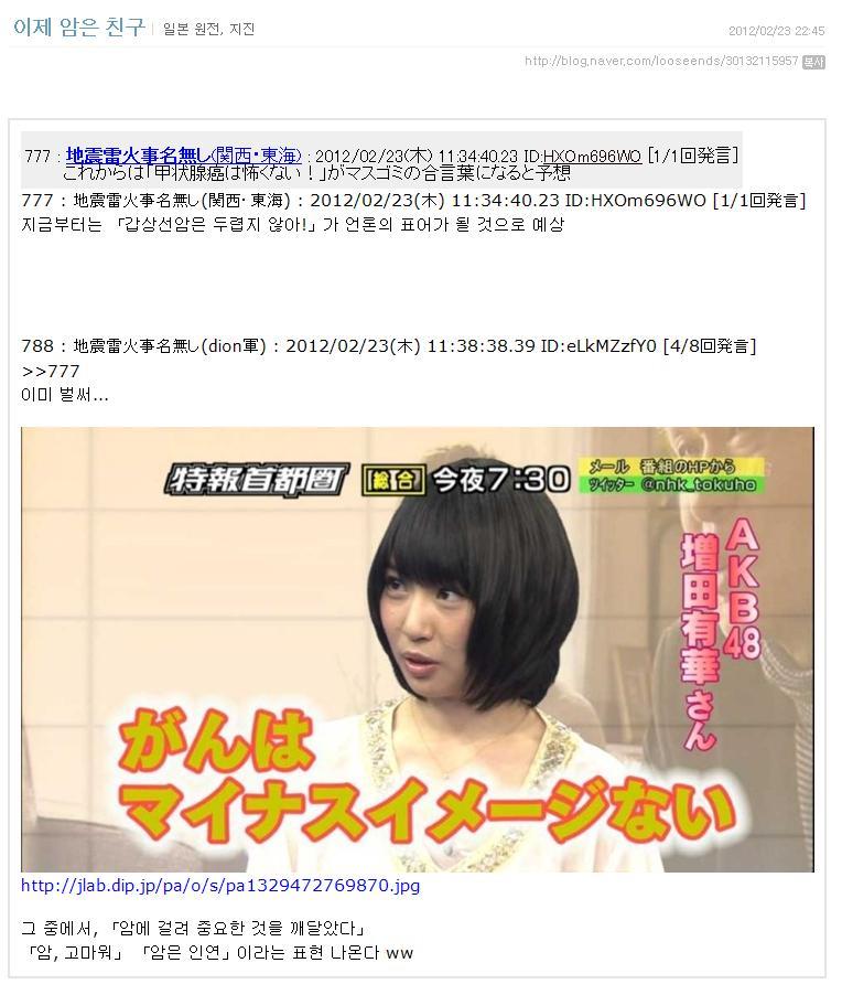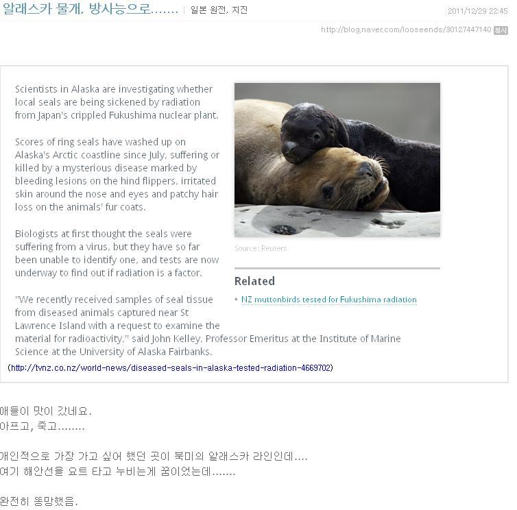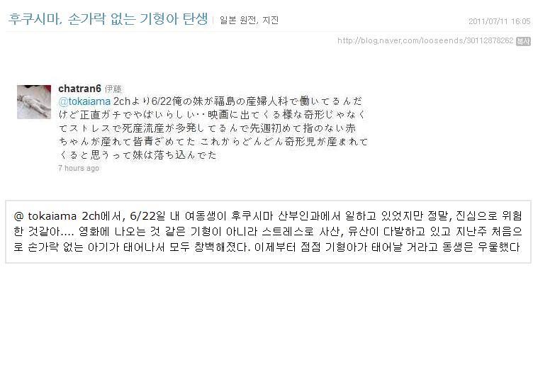 우연치 않게 일본방사능관련 글 찾아보다가 멘붕당해서 다같이 보는게 좋을거같아서 가지고 옴...