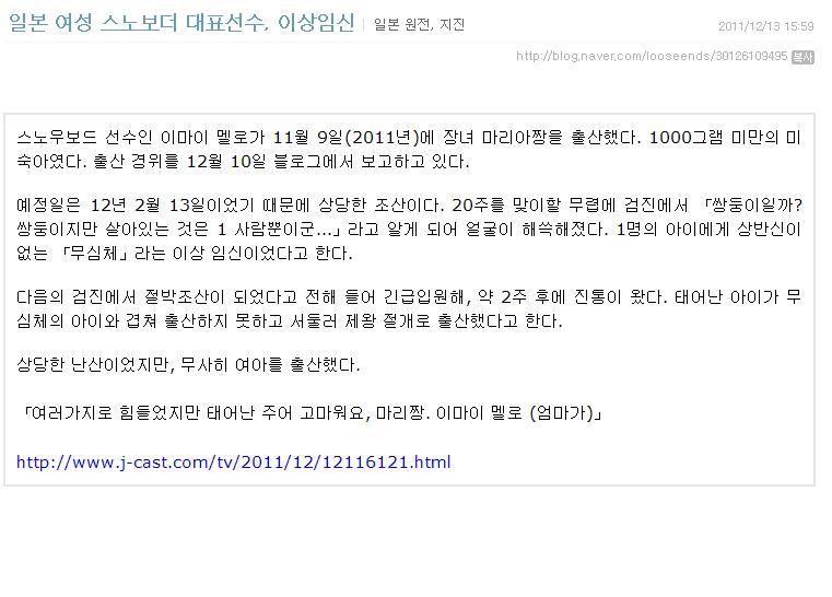 일본대표스노보더 쌍둥이 임신했는데 한명은 상체가없는 무심증..