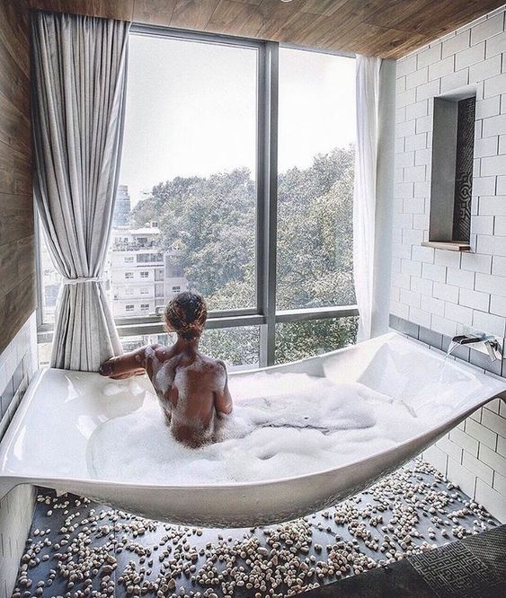 커다란 창으로 밖을 구경하면서 목욕할수 있는 욕조