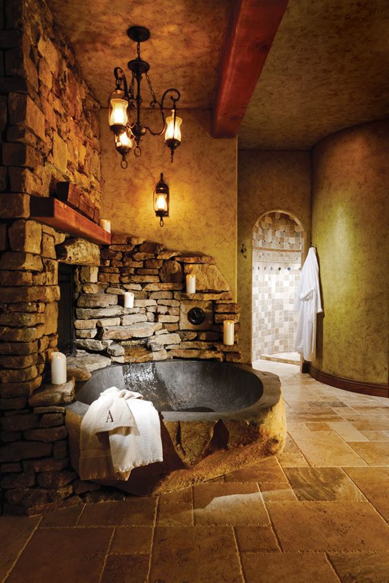 산속 돌을 깍아서 만든 욕조