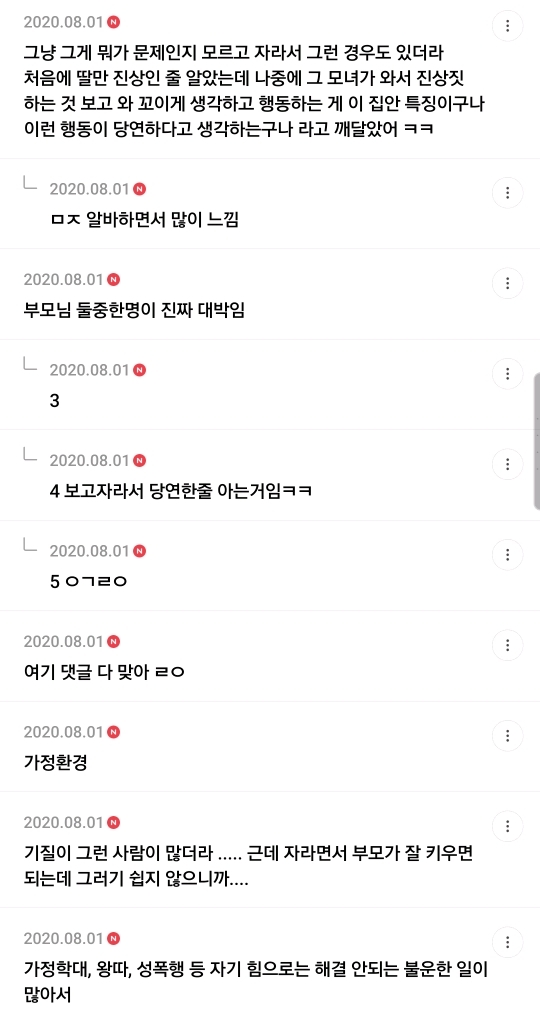 작성자맨날 운좋은여시 작성시간 20.08.02 고생많이해서... 뭘보든 자격지심생김...