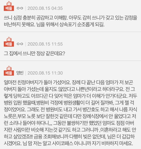 내가 할 수 있는 모든 욕을 축문에 써서 태워주고 싶네요.