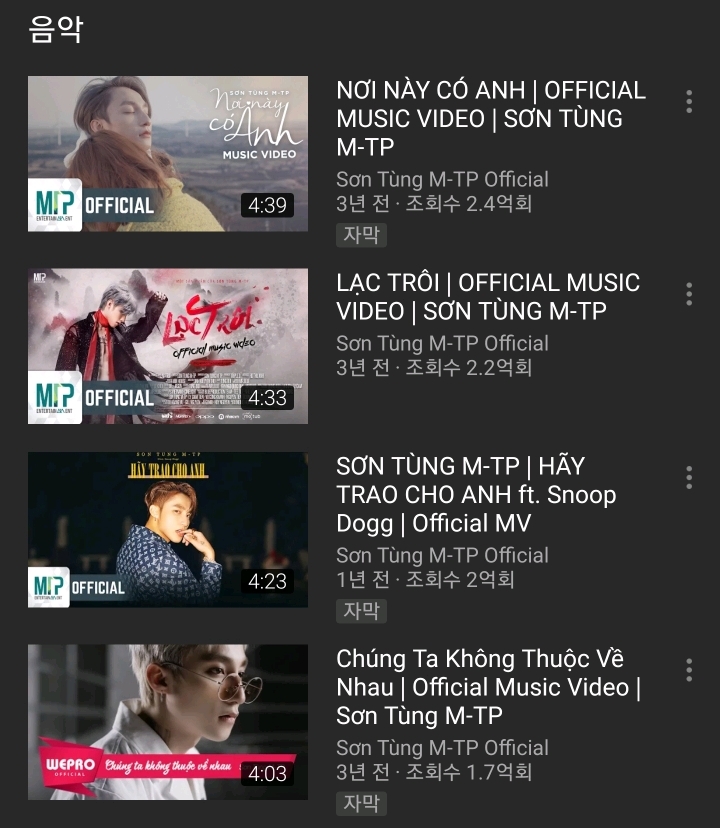 작성자봄날의개. 작성시간 20.08.25 ㄹㅇ 베트남에서 지디급인듯ㅋㅌㅌㅋㅋㅋㅋㅋㅋㅋ저기있는 뮤비 중 하나는 스눕독 피쳐링도 있어ㅋㅋㅋㅋㅋㅋㅋㅋ제주도에서 찍은 뮤비도 있곸ㅋㅋㅋㅋㅋㅋㅋ