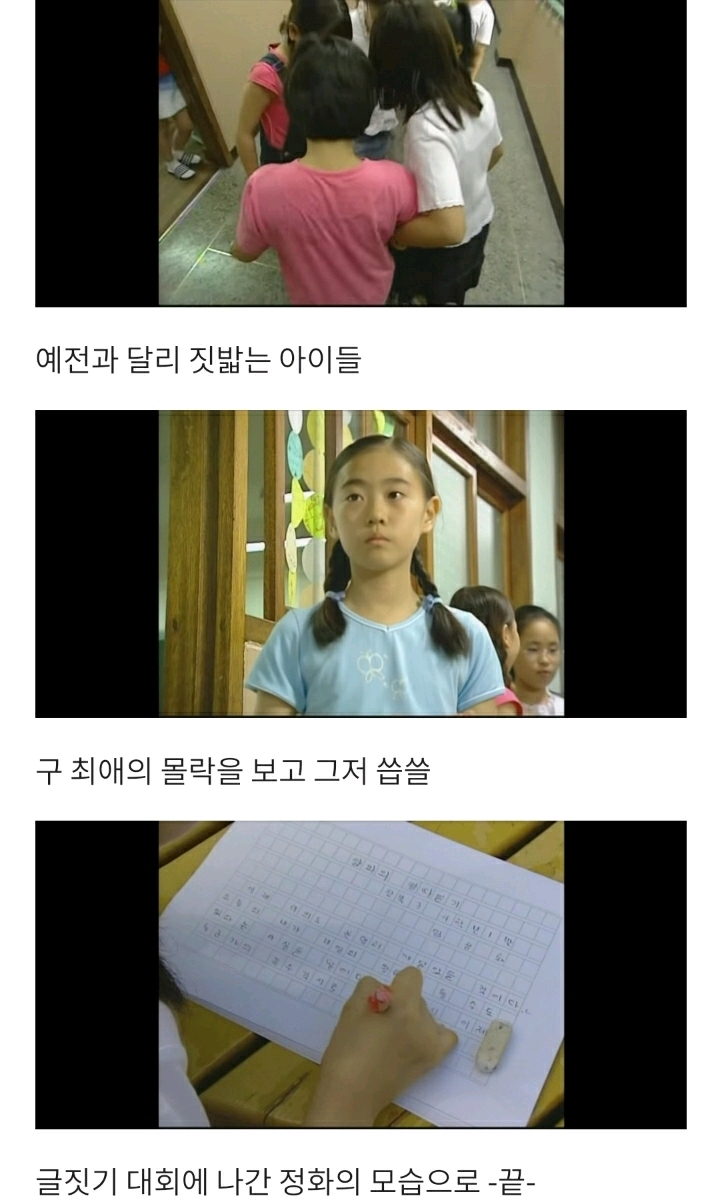 [스크랩] [흥미돋][TV로 보는 원작동화] 양파의 왕따일기 작성자소중한사람2|작성시간20.08.26|조회수2,880 목록 댓글 6 글자크기 작게가 글자크기 크게가 출처 :https://youtu.be/r56lzCSpVwwhttps://youtu.be/8jQF_0uV920https://youtu.be/6bNlkCvklkshttps://youtu.be/tyXD9PScdu8https://youtu.be/LHaSI63M7LQhttps://youtu.be/G8hLy4iFa4Ihttps://youtu.be/X-tmPcPWvQ4https://youtu.be/pZrJ6_2sC2o 다음검색 스크랩 원문 : *여성시대* 차분한 20대들의 알흠다운 공간 현재 게시글 추가 기능 열기 북마크 공유하기 신고 센터로 신고 댓글 댓글 6 댓글쓰기 답글쓰기 댓글 리스트 작성자180번의 심장박동수 | 작성시간 20.08.26 와 이거 초딩때 봤던건데 진짜 추억이다... 작성자비완벽주의자 | 작성시간 20.08.26 몇번이나 봤는데 여기 아역들 근황이 궁금하다 작성자생록달록아니알옥당록 | 작성시간 20.08.26 정선이 진짜 자주 나왔는데 요즘 뭐하는지 궁금 작성자장래희망=노빠꾸집착광공 | 작성시간 20.08.26 헉 나이거 책으로 봤었는데 작성자니코의 댄스교실 | 작성시간 20.08.26 사족 미치게땈ㅋㅋㅋㅋ 댓글 전체보기
