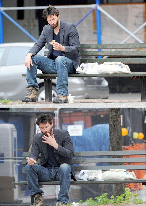 외국애들도 놀리는 새드키아누 짤... 그냥 벤치에서 밥먹는중 외로워보이긴 함