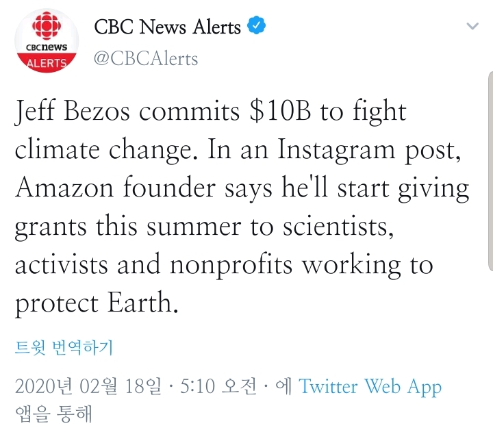 아마존 회장인 제프 베조스가 뜬금없이 개인자산 100억달러(라고 해도 재산의 8퍼정도임)를 기후변화 운동에 쓴다고 함