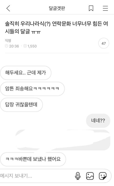 작성자경계 작성시간 20.09.13 어우 진짜로... 회사단톡만 아니었어도 카톡탈퇴했어...