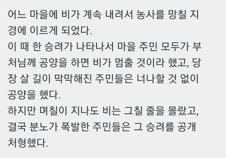 (승려 목을 메단 후에는 오히려 가뭄이 찾아왔다는 다른 버전도 존재한다)