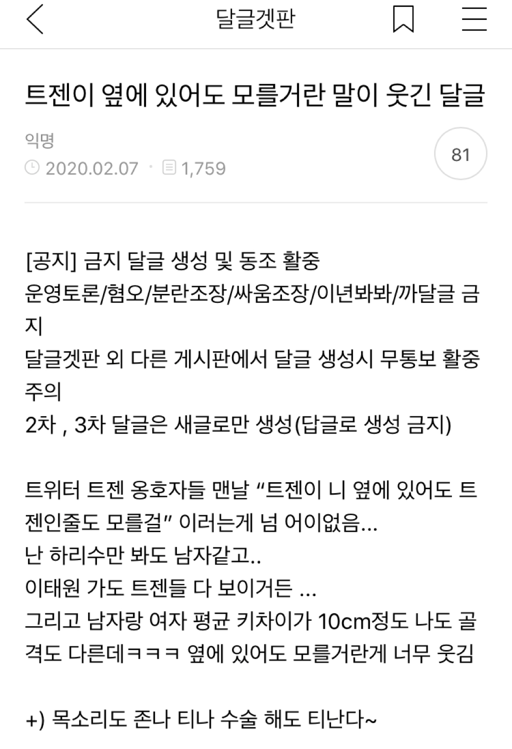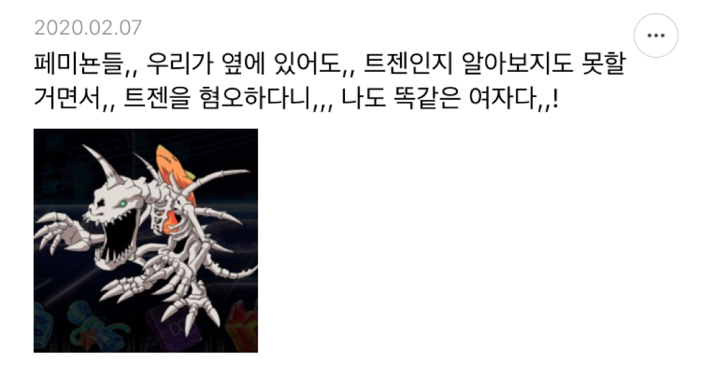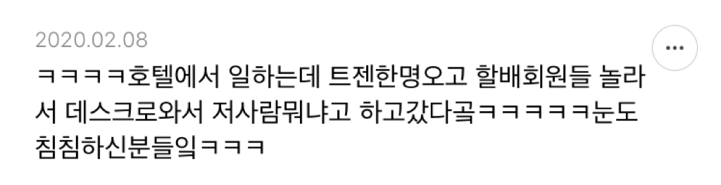 구니까 분명 앞에 사람이있는데 사람으로 인식이 안되고 저게 뭐야...?뭐야...?이러다가 한 30초 뒤에나 저게 트젠이구나...하고 깨달음ㅋㅋㅋㅋㅋ -