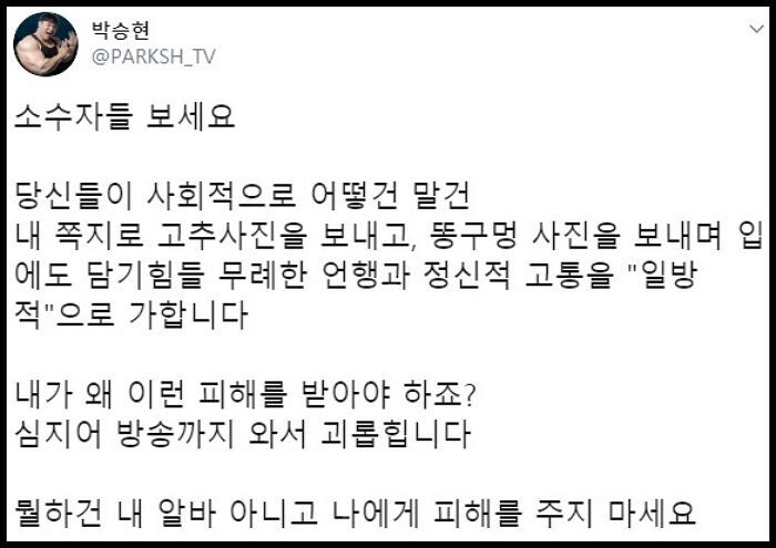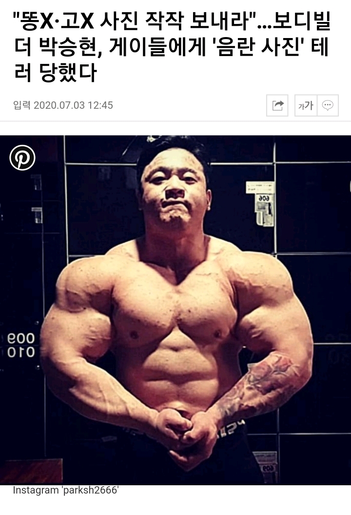 [여시뉴스데스크]"똥x 고x 사진 작작 보내라"...보디빌더 박승현, 게이들에게 '음란사진' 테러당했다