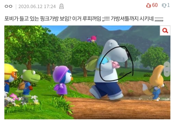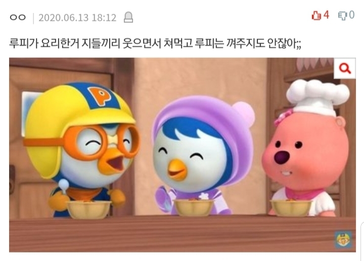 루피가 너무 눈치줘서 똑바로 못쳐다보고 곁눈질로 보는거임