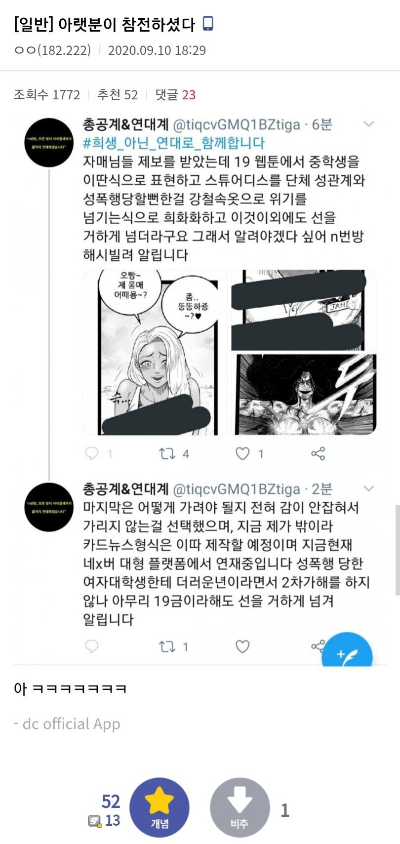 작성자할 수 있는 것부터 하나씩 실천하기 작성시간 20.09.11 더러운 자적자새끼들ㅋㅋ