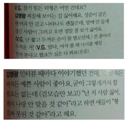 김영광:인터뷰 할때마다 얘기했던 건데,전 남자든 여자든 예쁜 사람이 좋아요.
