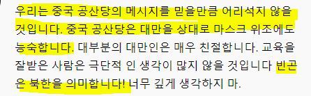 (국제사회에서 코로나때문에 대만 위상 높아지는것 같으니 미리미리 이간질 놓기)