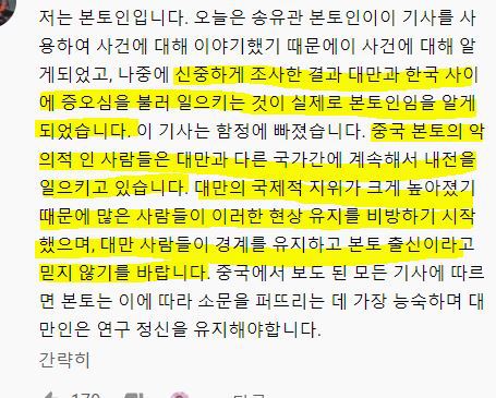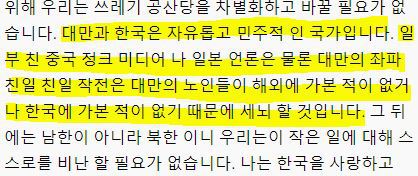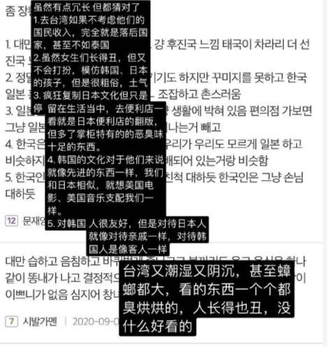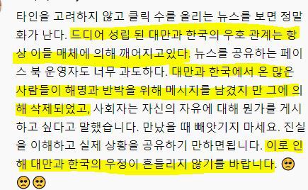 2. 중국인들이 요즘 페북이나 이런데다가 대만-한국 혐오조장글 엄청 써댄대..그래서 미치겠다함