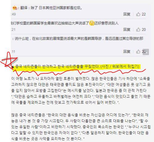 1. 중국인이 일부러 일베 사이트 들어가서 한국이 대만 욕한글 찾아서 ^손수 번역^