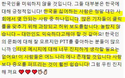 (우리가 대만->한국혐오 게시물을 접한것처럼!)